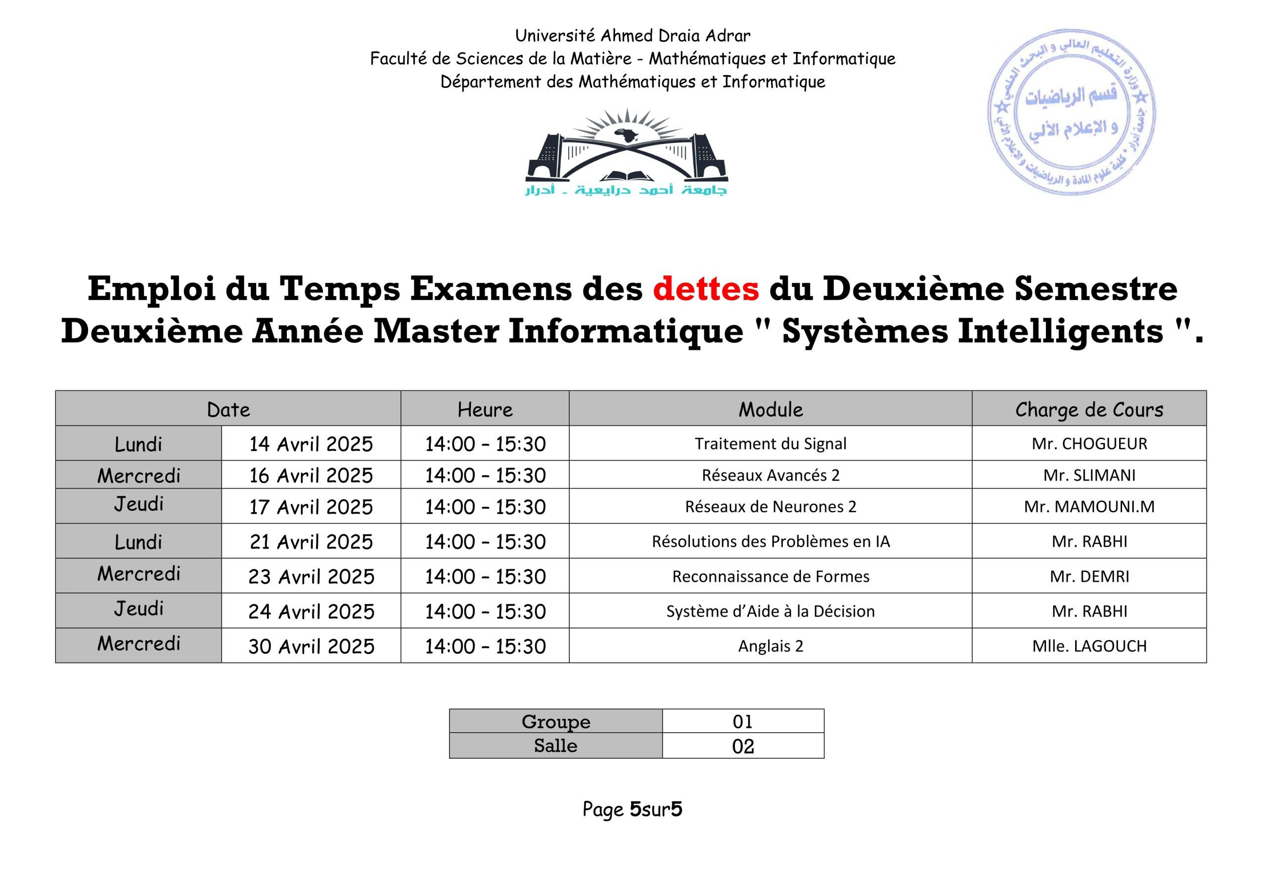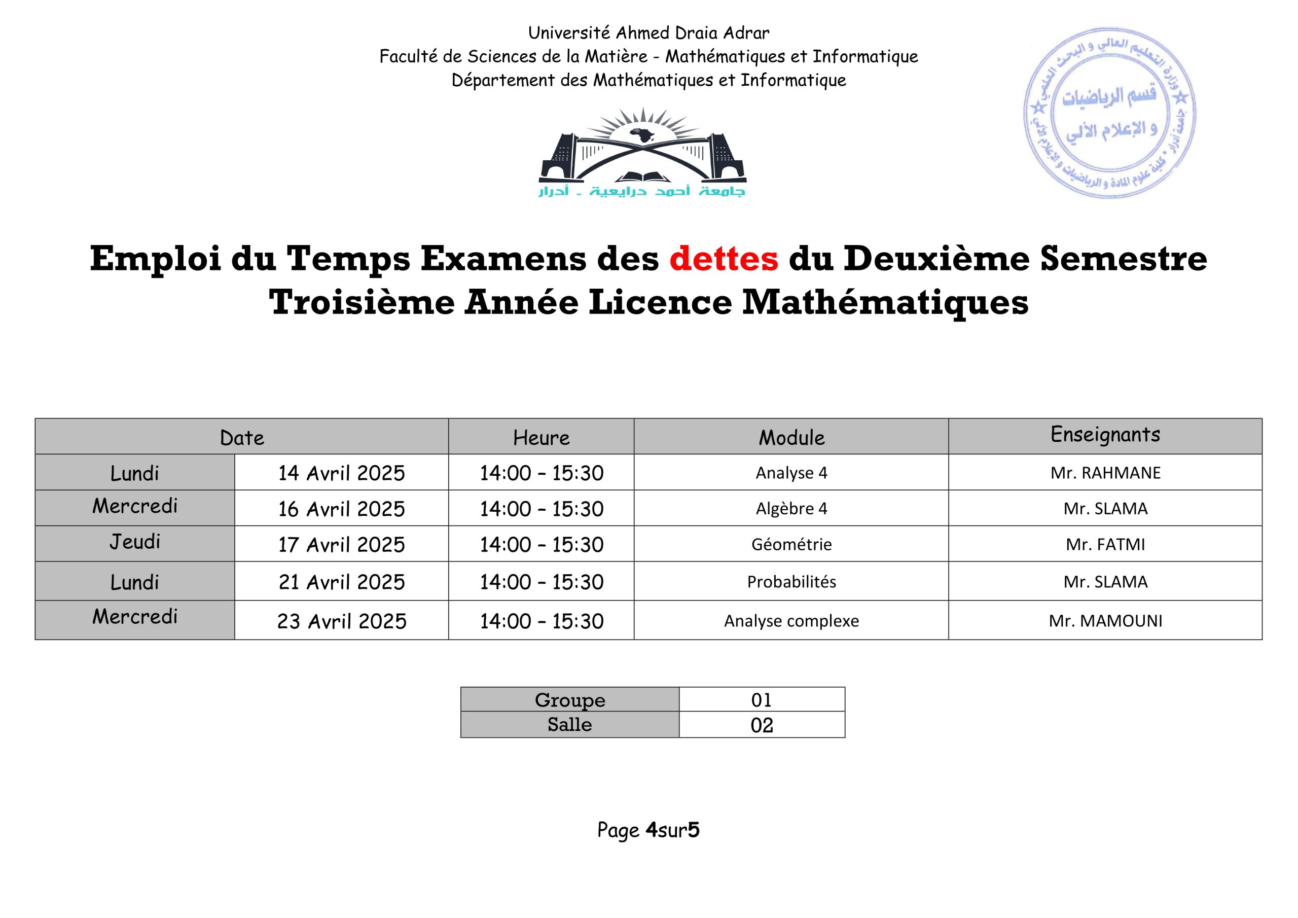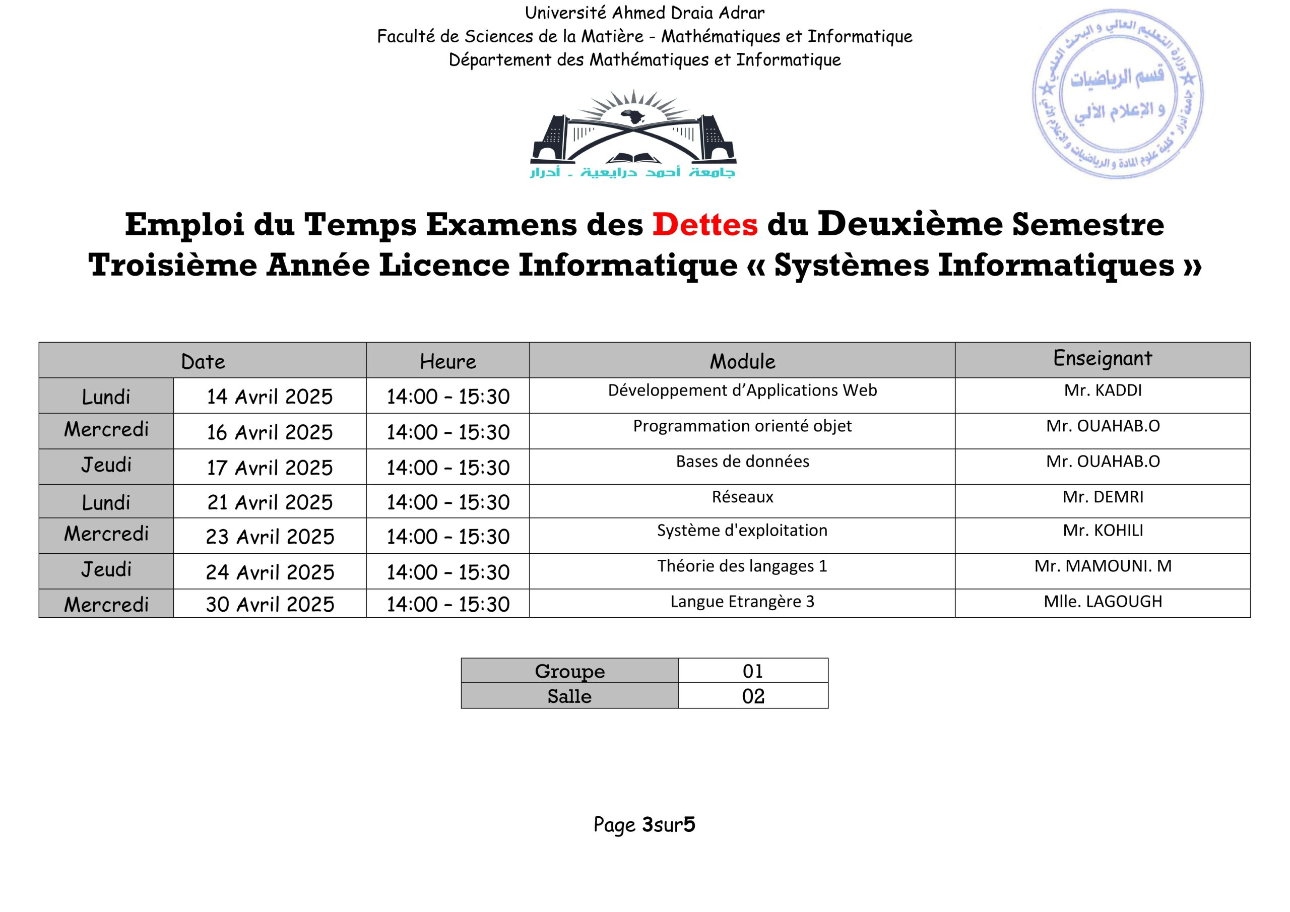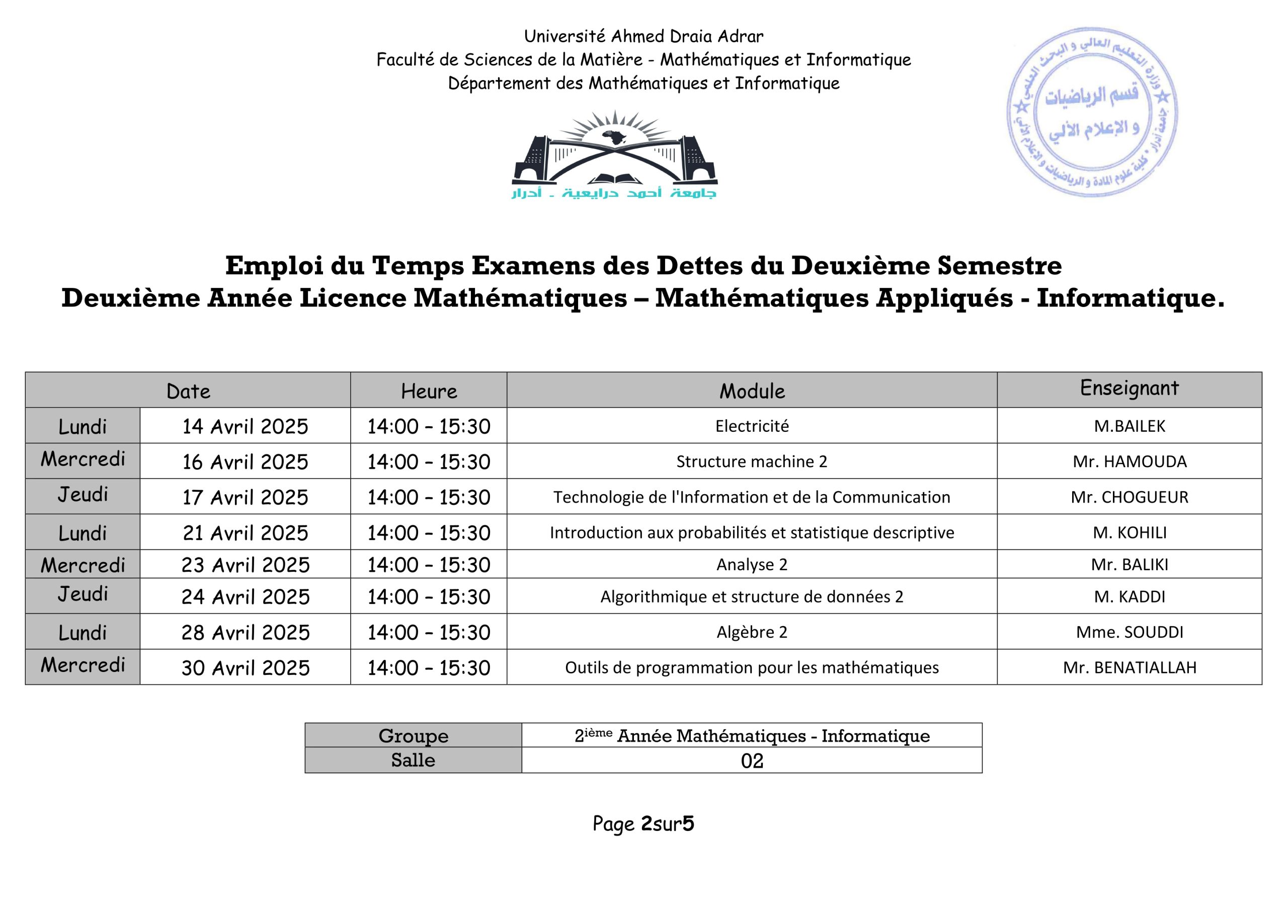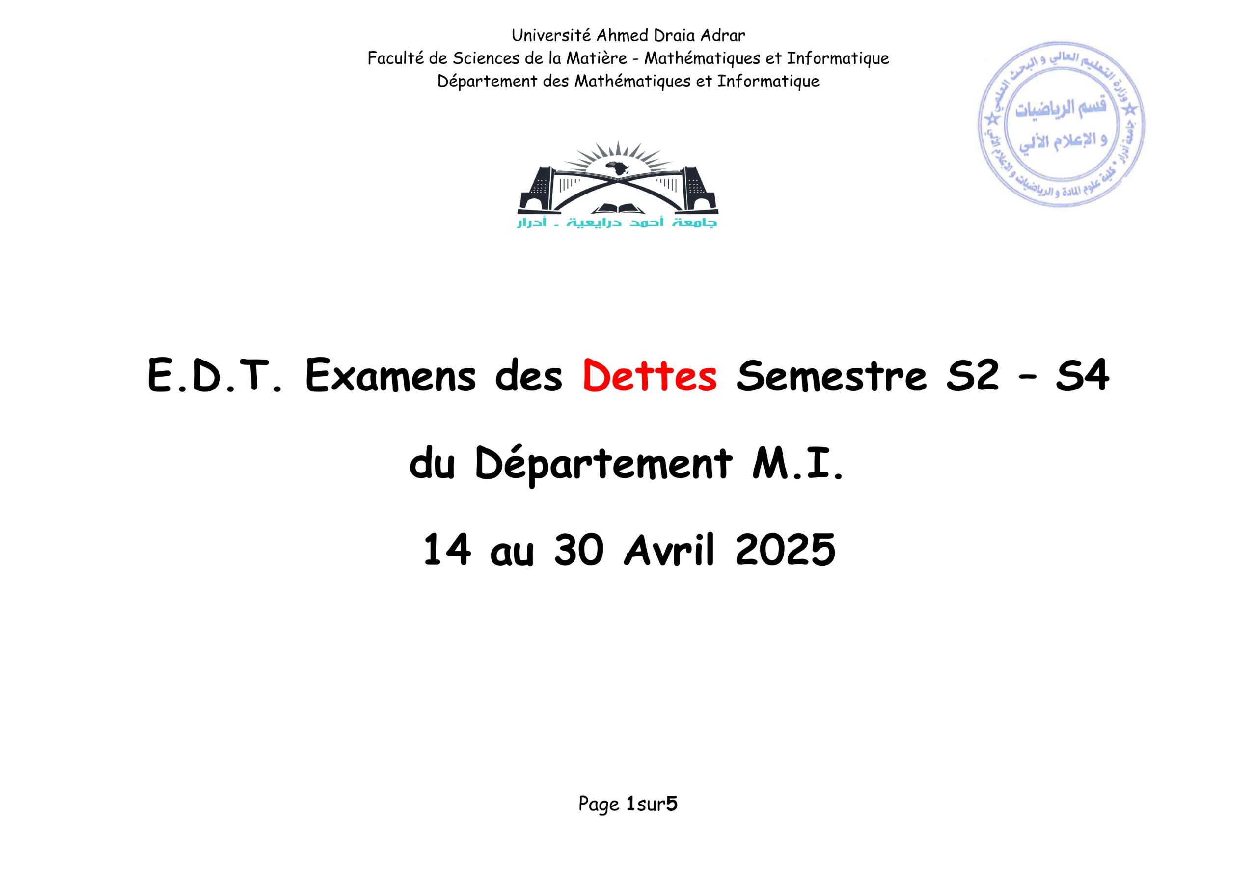 رزنامة امتحانات الديون للسداسي الثاني لقسم الرياضيات و الإعلام الآلي للموسم 2024 – 2025 0 392 Share 0 392 Share