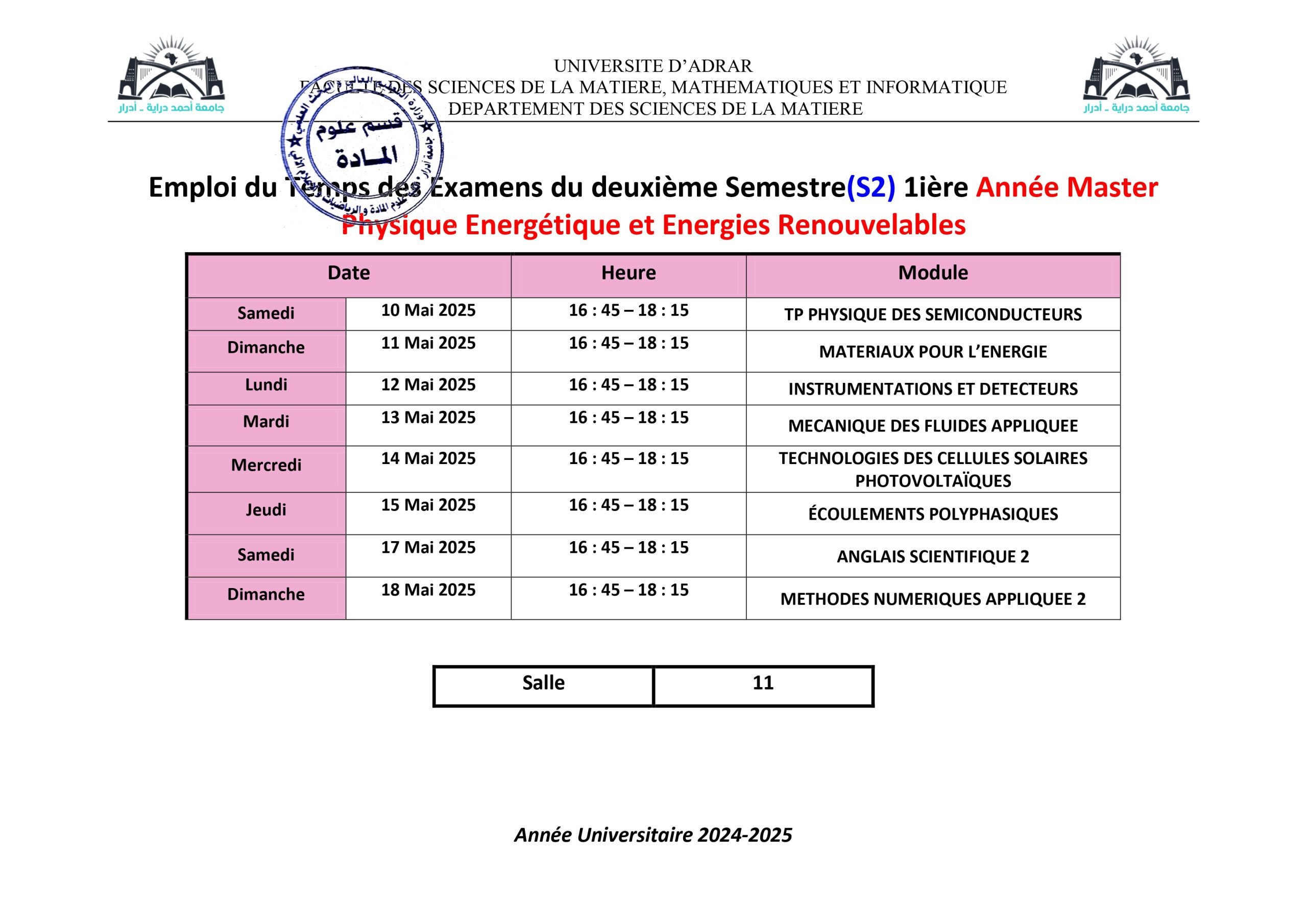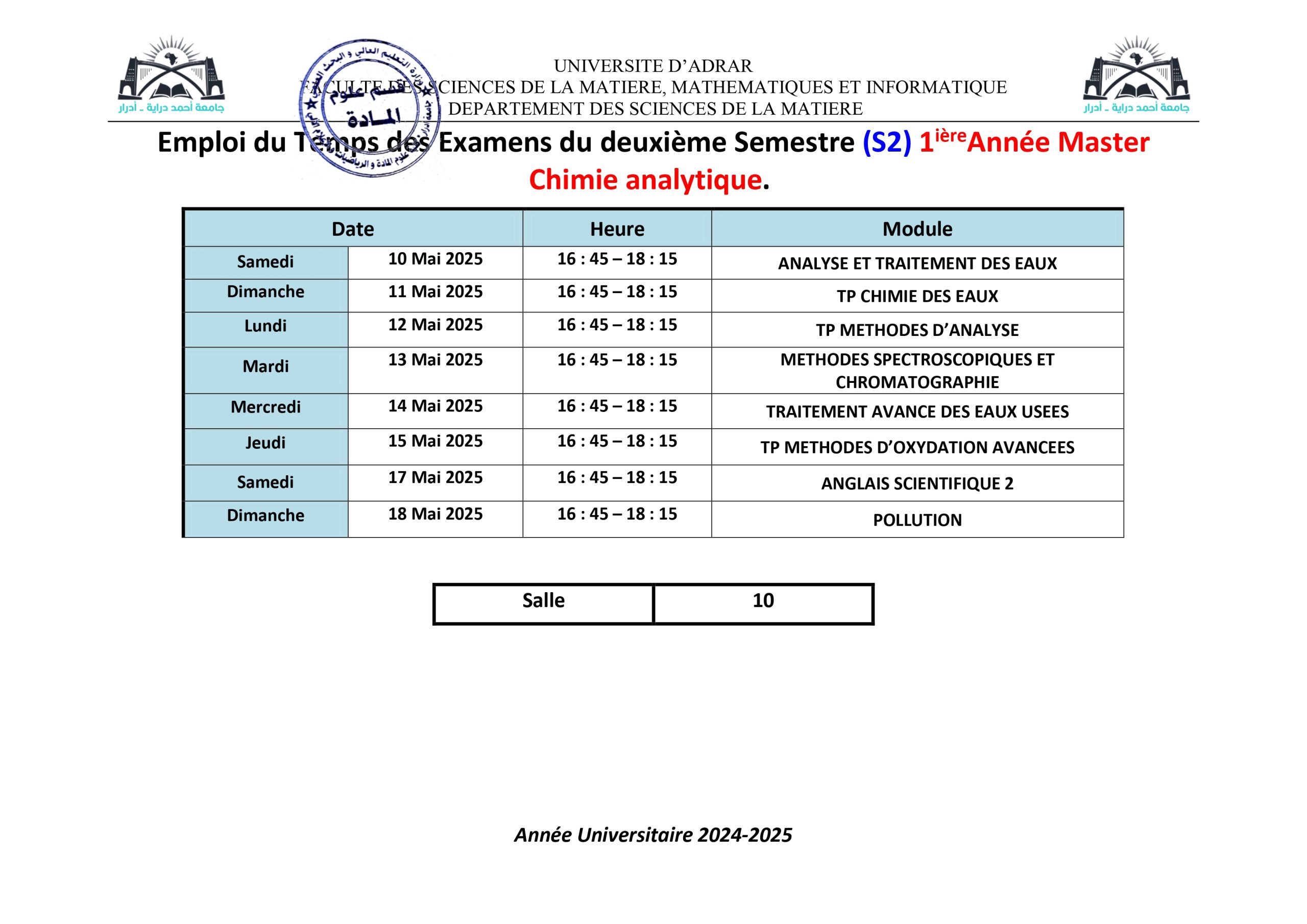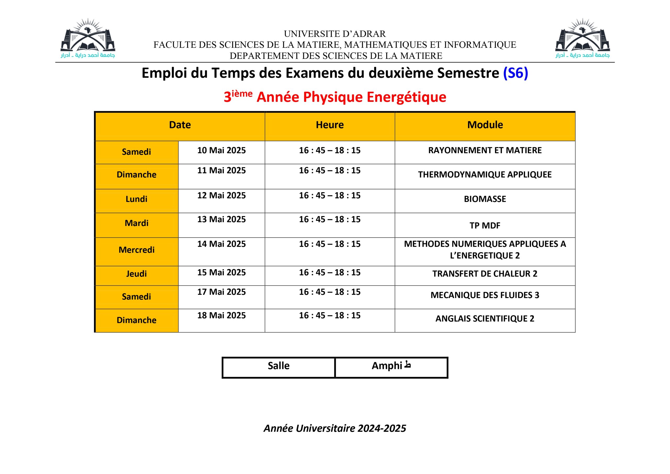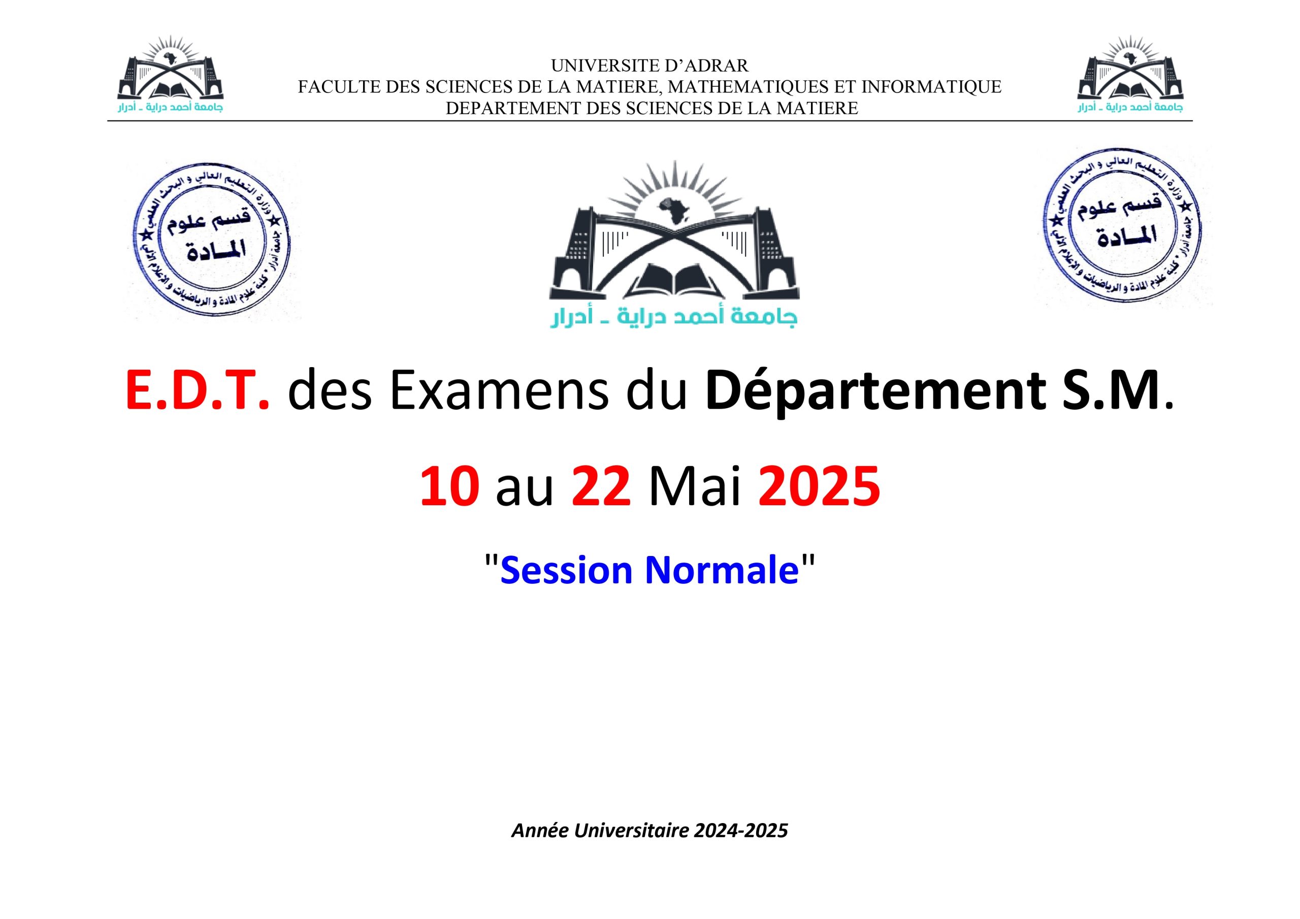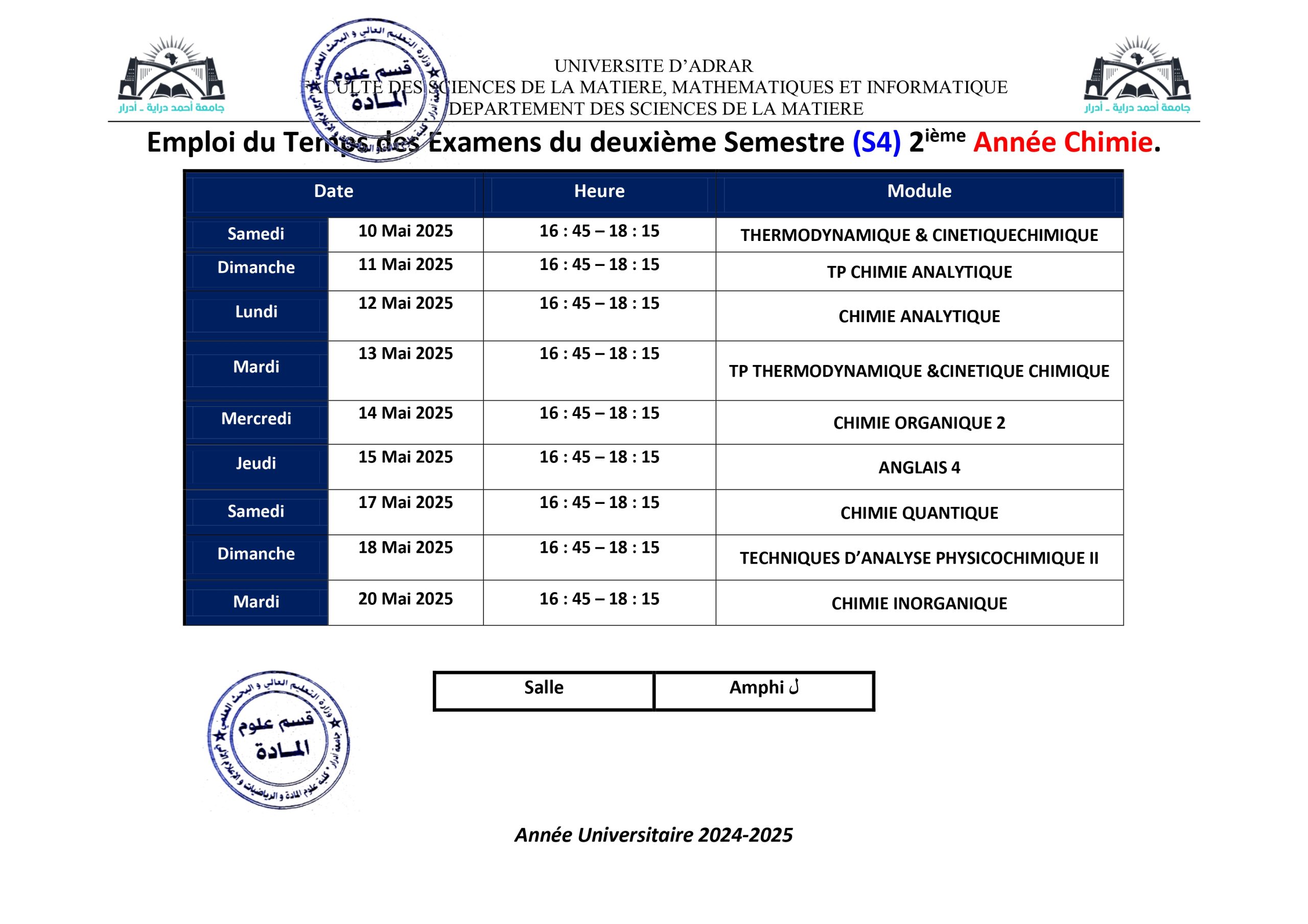 رزنامة امتحانات الدورة العادية للسداسي الثاني قسم علوم المادة للموسم الجامعي 2024-2025 0 310 Share 0 310 Share